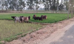 ग्रामीण अंचल में तमाम गोवंश खुलेआम घूम रहे हैं। सैकड़ों की संख्या में आवारा पशु खेतों में घुसकर फसलों को चट कर रहे हैं। किसान रातो में जागकर फसलों की रखवाली करने पर मजबूर हो रहे है। आवारा पशु खेतों में घुसकर किसानों की खून पसीने से सिचाई की गेहूं, सरसों, जौ, बरसीम की फसल को चट कर रहे हैं। शाम ढलते ही गोवंश का रुख खेतों की ओर हो जाता है। अनेक किसानों ने फसल को आवारा गोवंश से बचाने के लिए अपने खेतों के चारों और रस्सियों से बाध लगा रखी है। लेकिन यह रस्सियां भी गोवंश को खेतों में घुसने से नहीं रोक पा रही है। मजबूरन किसानों को रातों में आवारा गोवंश से अपनी फसल को बचाने के लिए खेतों की रखवाली करनी पड़ रही है।